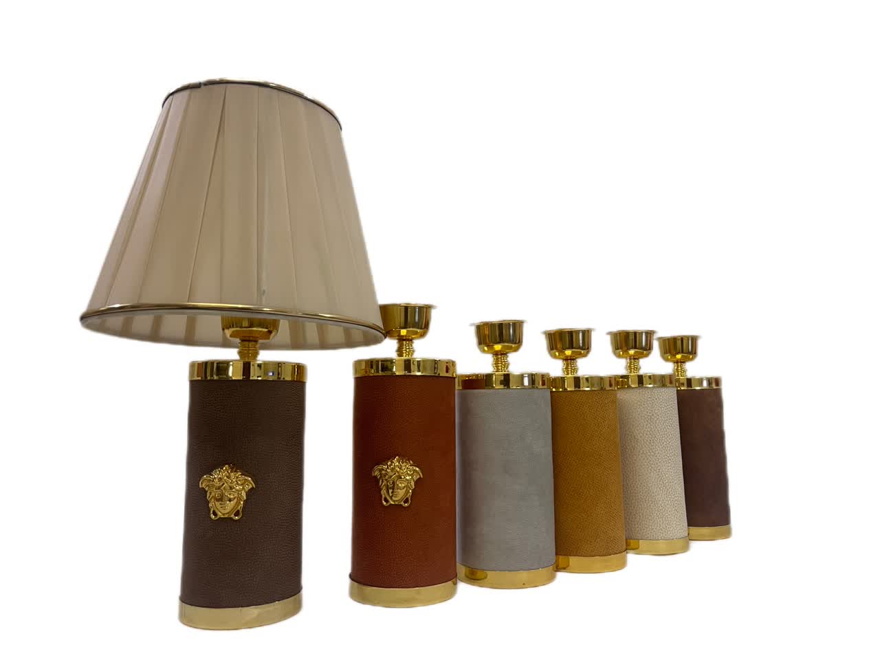 آباژور رومیزی مدل ورساجه از برند هانیما، نمادی از شکوه، ظرافت و طراحی لوکس است. پایهی استوانهای با روکش پارچه در کنار قطعات فلزی با آبکاری طلایی و شید پارچهای پلیسه، ترکیبی چشمنواز ایجاد کرده که این آباژور را به یک المان دکوراتیو خاص و اشرافی تبدیل میکند.